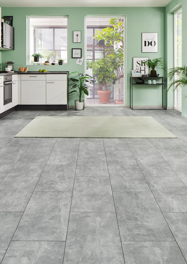 Ein Laminatboden in Fliesenoptik vereint zeitlose Eleganz mit moderner Wohnlichkeit