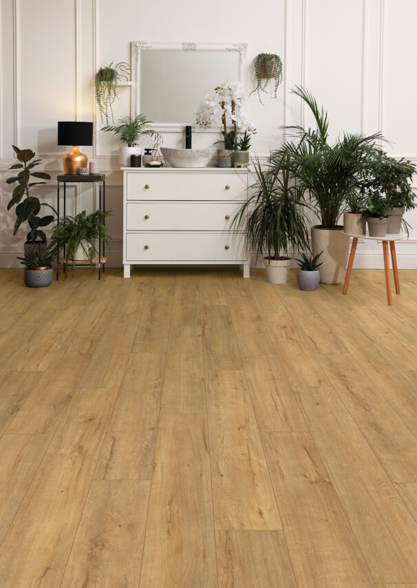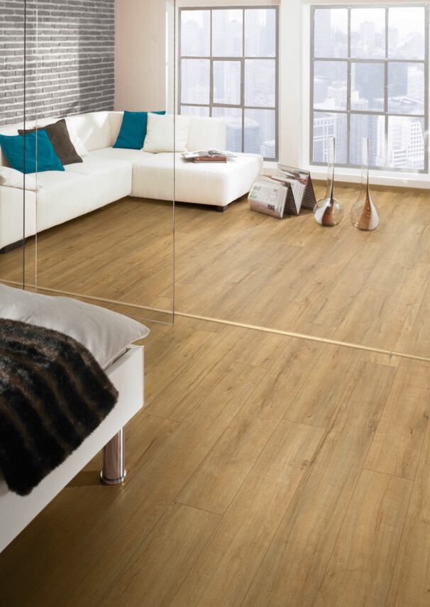 Laminat in nostalgischem Eichen-Aktionsdekor verleiht Räumen einen modernen Retro-Chic