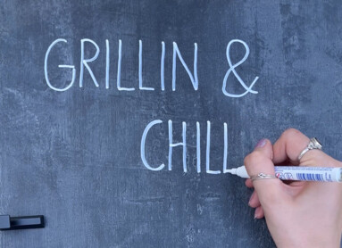 Mit einem Bleistift zeichnet ihr einen passenden Spruch vor – wir haben uns für „Grillin‘ & Chillin‘“ entschieden. Malt anschließend die Buchstaben mit einem Permanentmarker nach.