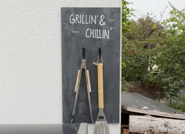 Findet einen geeigneten Platz in Grillnähe und bringt den Organizer an der Wand an.