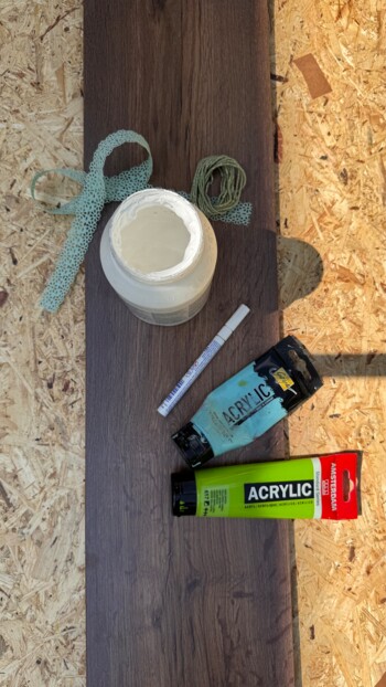 - Werkzeug: Säge, Zollstock oder Lineal, Bleistift, Pinsel, Permanentmarker
