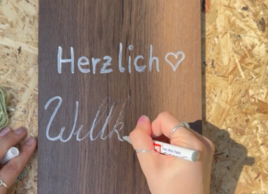 Schreibt mit einem Permanentmarker euren Willkommensgruß oben auf die Paneele.
