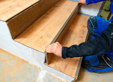 Bei Treppen unterscheidet sich die Verlegeart von Laminat, denn das Laminat wird nicht schwimmend verlegt, sondern verklebt. Darüber hinaus müssen die Paneele genau zugeschnitten werden. Beim Verlegen ist weiters zu berücksichtigen, dass die Laminat-Verlegerichtung zu jener der anderen Räume passt. Wenn Sie die richtigen Utensilien für Ihr Vorhaben parat haben, kann es losgehen.