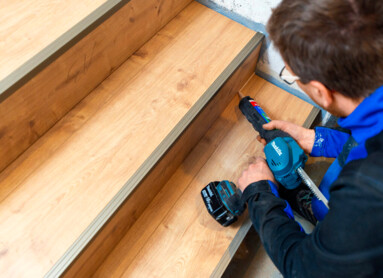 Decken Sie die Treppenkanten durch passende Treppenprofile zum Schutz ab. Bei LOGOCLIC® finden Sie selbstklebende Profile sowie Profile zum Dübeln.