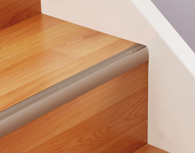 Bei LOGOCLIC® erhalten Sie nicht nur Laminat für Treppenstufen, Sie finden hier ebenfalls die passenden Abschlussprofile für Treppenkanten. Befestigt werden die Abschlussprofile auf Treppen-Laminat mit Schrauben. Die Abschlussprofile für Laminat von Treppenstufen sind zugleich praktisch und verleihen den Treppen ein sauberes und ordentliches Aussehen.